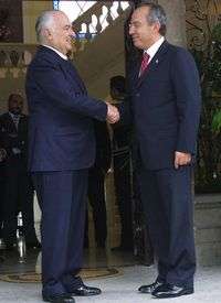 De la Madrid, quien ha sido calificado como uno de los presidentes más grises de la historia del país (1982 a 1986) y es recordado por el pasmo gubernamental frente a los terremotos de 1985, llegó cerca de la una de la tarde a las oficinas de Calderón. Al término de la plática, el político, de 71 años, avanzó a paso lento y con dificultad hasta las escalinatas de la casona, donde se colocó al lado de Calderón para que fotógrafos y camarógrafos pudieran captarlos juntos. La despedida duró apenas unos segundos.