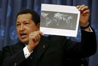 En el más feroz ataque frontal contra Estados Unidos que se verá esta vez en la Asamblea General de la ONU, el presidente venezolano proclamó que la mayor amenaza para el mundo es el gobierno estadunidense y su proyecto imperialista. Al hacer uso de la tribuna, Chávez mostró un ejemplar de Hegemonía o sobrevivencia, de Noam Chomsky, y recomendó a todos los asistentes leer este "libro excelente".