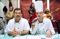 Mohamed Mazeh, empresario gastronómico (izquierda), y el chef Javier Peláez ofrecieron una conferencia para dar a conocer los platillos que se servirán en el recién inaugurado restaurante