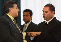 Los legisladores Felipe González González, del PAN, y Gabino Cué Monteagudo, de Convergencia, durante la sesión de ayer en Xicoténcatl