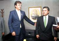 Marcelo Ebrard, jefe de Gobierno electo del distrito Federal, y José Guadalupe Carrera, presidente del Tribunal Superior de Justicia, al término de una reunión