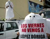 Alrededor de 500 personas, cubiertas con capuchas blancas y disfrazadas, según dijeron, de "fantasmas", envolvieron ayer con tela igualmente blanca toda la manzana que ocupan las instalaciones de Televisa, entre las avenidas Chapultepec, Río de la Loza y Niños Héroes.