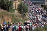 Villa de Etla, Oax., 21 de septiembre. Unas 5 mil personas iniciaron hoy la marcha-caminata del movimiento magisterial y popular, denominada Por la Dignidad de los Pueblos de Oaxaca, la cual se dirige a la ciudad de México, donde se instalarán en plantón permanente frente al Senado.