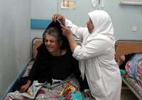 Una iraquí conforta a familiar herida por la explosión de una bomba en la periferia de Bagdad