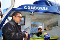 El secretario de Seguridad Pública del Distrito Federal, Joel Ortega Cuevas, observa un helicóptero de rescate del agrupamiento Cóndores, tras la entrega de constancias de capacitación a pilotos, médicos y paramédicos de la corporación