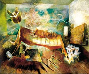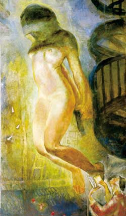En su pintura confluyen el rigor de la disciplina académica con la libertad conceptual del surrealismo. Durante su etapa formativa incursionó en varias corrientes de vanguardia que enriquecieron su capacidad expresiva, sin desviarlo de su objetivo principal, de esa especie de teología laica que consistió en asociar el mundo de la historia con el mundo del más allá.