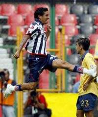 Jesús Arellano celebra su anotación, que puso al frente a Monterrey