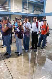 En el cerro Las Canicas, apenas recorridos unos cuatro kilómetros, los caminantes rindieron homenaje a nueve maestros fallecidos en un accidente automovilístico el 18 de marzo de 1996, cuando se dirigían a una movilización en la capital de Oaxaca.