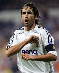 Raúl festeja el segundo gol que le marcó al Dinamo Kiev