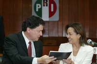 Ampliar la imagen Josefina Vázquez Mota, del equipo del presidente electo Felipe Calderón, entregó en las oficinas del PRI la Agenda Legislativa, que fue recibida por el secretario particular de la presidencia de ese partido, Jorge Trujillo Foto: José Antonio López