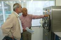 El titular de la Sagarpa, Francisco Mayorga, y el director del laboratorio de seguridad contra enfermedades exóticas, Igor Romero, durante su recorrido por el centro