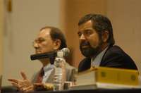Enrique del Val Blanco y Juan Ramón de la Fuente, secretario general y rector de la UNAM, respectivamente, durante la sesión del Consejo Universitario, realizada ayer