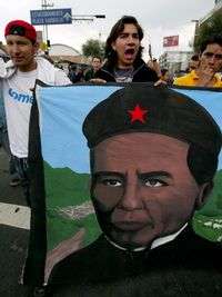 Integrantes de la APPO, en la vanguardia de la marcha de ayer