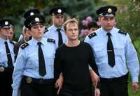 Policías de Georgia escoltan a un militar de Rusia (al centro) acusado de espionaje para entregarlo a mediadores internacionales, en el contexto de la crisis entre esas naciones