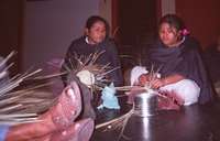 En la imagen, las tlamacazapas tejen objetos que rebasan sus funciones cotidianas