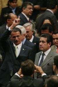 Ampliar la imagen El secretario de Gobernación, Carlos Abascal, atraviesa el salón de plenos de la Cámara de Diputados FOTOFrancisco Olvera