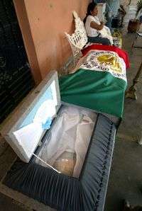 El féretro con el cuerpo del "vigilante popular" Arcadio Hernández fue cubierto con una bandera