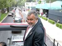 El jefe de Gobierno, Alejandro Encinas, a bordo de un turibús sobre Paseo de Reforma, conoció de varios proyectos en la zona