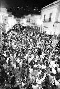 Efervescencia popular en la calle Juárez de la ciudad de Guanajuato, durante una noche del festival Cervantino, en 2003