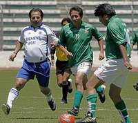 El presidente boliviano (derecha) participa en La Paz en un partido de futbol de funcionarios con corresponsales extranjeros, que terminó con triunfo gubernamental de 11 goles a uno FOOT Reuters