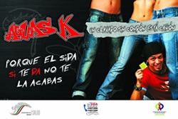 El primer mensaje se ha denominado “Aguas K” y está dirigido a jóvenes; consta de un espot en radio y otro en televisión, respaldados en carteles y trípticos en los cuales se busca alertar sobre la necesidad de estar informados y, si así lo han decidido, que usen condón en todos sus relaciones sexuales.
