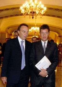 Guillermo Ortiz Martínez, gobernador del banco central, al terminar su conferencia en Mérida ante supervisores bancarios. Lo acompaña Jonathan Davis