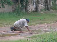 Tocando fondo: José Remes o José Reséndiz se inclina para beber de un charco. Este hombre se alimenta de insectos y yerbas, aunque ocasionalmente acepta comida. Según el DIF, la mayoría de los indigentes de esta ciudad muere en la calle