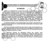 No obstante, la APPO consiguió copia del documento en el que se informa sobre el operativo, que fue planeado por la Dirección General de Seguridad Pública del Estado, la cual advierte que la intervención policiaca buscaría terminar con "las acciones subversivas que llevan a cabo integrantes de la APPO y han desencadenado hechos violentos que perturban la paz social, generando psicosis entre la ciudadanía por los constantes asaltos y robos en el primer cuadro de la ciudad".