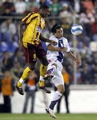 Juan Carlos Escobar (izquierda) despeja el balón ante el tuzo Juan Carlos Cacho