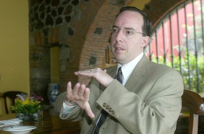 Oscar Colorado Nates, vocero de la Universidad Panamericana, durante la entrevista con La Jornada