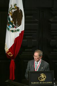 El galardón es justo reconocimiento al médico militar y humanista a quien se debe en gran parte la proeza de la vacunación masiva de los niños mexicanos. Prevención superior a la de naciones del norte rico, sin excluir a nuestro imperial vecino. Esa presencia y sus palabras de condena a la violencia, a la incuria, al mal trato que damos a los niños en el México del siglo XXI, dieron lustre al Senado; una lección de patriotismo, ajeno a la patriotería que nos aqueja. A partir de la década de los ochenta se impusieron quienes apostaron al desmantelamiento de nuestras instituciones, a la peregrina idea de que el remedio a todos los males es tener menos Estado, menos gobierno. Después de cinco lustros, la estabilidad es telón de fondo para una economía que no crece, el desempleo y la emigración de millones de mexicanos.