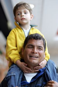 El izquierdista Correa, junto a su hijo. A la derecha, el millonario Alvaro Noboa