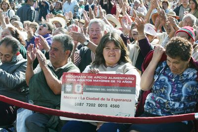 Entrega de tarjetas de pensión alimentaria para adultos mayores, en el Zócalo. Imagen de archivo