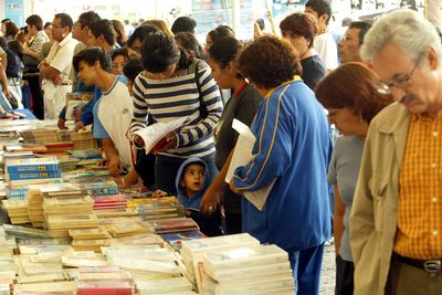 El tradicional sábado de comercio en el Centro Histórico aportó ayer a la sexta Feria del Libro en el Zócalo, como en ocasiones anteriores, miles de nuevos posibles lectores, los cuales, sumados a los otros tantos de capitalinos que de por sí ya se han apropiado de esa fiesta editorial que concluye este domingo, le han dado su reconocido perfil masivo.