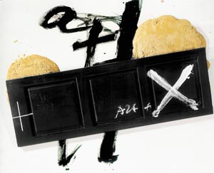 –Ese mensaje último que mencionas está muy presente. En mi obra, el dolor es perceptible como todas las cosas en la vida. Pero también hay maneras de aliviar este dolor: he estado sereno, y en ciertos momentos amoroso. Quizá cuando empecé a trabajar se vivía una época más oscura. Ya sabes cuál era la situación en España en la segunda mitad de los cuarenta. También, después de la segunda guerra mundial, como a otros artistas de mi generación, especialmente los expresionistas abstractos y algunos pintores del círculo de París, se apoderó de mí una depresión y un sentimiento de crisis en relación con la cultura occidental. Por la época que me tocó vivir, y quizás, por mi propio temperamento, es posible que haya dominado esa oscuridad, no sé sí exageradamente. Ahora los tiempos que le tocan a tu generación son otros. Tal vez la edad te proporciona una cierta perspectiva y una cierta objetividad que explica la observación que haces. Pero también te digo que en toda mi obra, aunque no es evidente, hay también centelleos de esta idea de amor. Quizás una idea ya madura, que sólo los años te puede dar. –¿Hay otras cosas que lo han marcado tan hondamente en su obra? –Un hecho que me marcó mucho fue la enfermedad de mi juventud. Esta marca ha sido y es fecunda. He vivido "fenómenos" muy extraños parecidos a los que dan carta de naturaleza los chamanes. Un chaman ha de tener la experiencia de una enfermedad muy grave o la sensación de morirse. Pues bien, yo he experimentado este proceso: de joven cuando se me descubrió que tenía una lesión tuberculosa en un pulmón, coincidió con un ataque cardiaco que me provocó una sensación de asfixia tremenda. Tuve la sensación de morir; se me enfriaron los miembros. –¿Sintió el miedo de morir en ese instante? –Desde luego. Mi madre, que era muy religiosa, avisó a un cura que me dio la extremaunción. Tal vez sea una pedantería por mi parte situarme al mismo nivel que los chamanes, pero los chamanes son gente sencilla y corriente como cualquiera, aunque tienen esta hipersensibilidad. Y la enfermedad produce esta hipersensibilidad. Hoy tengo, como sabes, otros problemas de salud: la sordera que me causa una situación de aislamiento. También padezco un problema en la vista que puede transformarse en ceguera. Se trata de unas lesiones en la mácula, justo en el centro de la visión. No veo las cosas diminutas; por ejemplo, para leer necesito una lupa y a distancia no veo con precisión. Ahora parece que ese proceso irreversible se ha estabilizado, como cicatrizado. Con todo, no me impide pintar porque cuando se mira un cuadro, uno no concentra la mirada en un punto determinado, sino que hace un recorrido con la vista y esto me compensa las manchas de visión vacías. Este estado de salud me provoca, como te decía antes, una hipersensibilidad privilegiada. –Esa búsqueda constante de un lenguaje inédito y único desde varios frentes, ¿tiene un límite o es más bien interminable? –Después de tantos años de estudiar te encuentras que la realidad sigue siendo un misterio. El misterio persiste, por lo menos en el hecho que no tenemos creencias demasiado claras. Hay religiones –como el cristianismo– que dan unas esperanzas más definidas, más concretas, pues te dan la esperanza de alcanzar "el cielo". No es que no crea que debamos mantener ciertas ilusiones, pero hay un momento insuperable, un misterio total e insuperable: la muerte, que no tiene ninguna respuesta. –Dos grandes componentes de su obra son la provocación y la contemplación. Ambos tienen un papel clave, pero su intención es que el espectador al observar el cuadro despierte, pero al mismo tiempo encuentre cierta calma. ¿Considera que ambas se compaginan en el cuadro? –Regresando al zen, podría asegurar que en él hay una vertiente meditativa para sacudir la mente, para hacer que algo sea más bien indigerible que digerible. En momentos me vuelvo contemplativo y me disuelvo en el vacío. Pero existen otros momentos donde quiero, por el contrario, sugerir el vacío con una sacudida y despertar el "yo" interno del espectador. –¿Podría ser el coche o confrontación de una lectura de su obra? –Mis obras permiten diversas lecturas. No obstante, al sugerir las cosas gano un margen mucho más amplio de asociaciones que me gustaría provocar en el espectador. En un principio era algo que no analizaba, pero desde hace algunos años he estudiado el arte del Extremo Oriente, en el cual la polivalencia tiene una gran importancia. He observado que cuando las cosas se dibujan solamente de forma alusiva, el espectador se ve obligado a completarlas, con su propia imaginación, lo cual implica ya su participación activa pues él mismo se cuestiona, lo que considero importante y estimulante. Me interesa que el espectador participe de los problemas del artista, pues sólo de esta forma se logra una comunicación más allá del arte.
