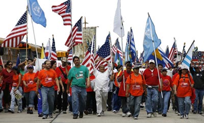 Los miembros de la familia Fuentes, como buena parte de los marchantes, no son "ilegales", pero apoyan a los 12 millones que sí lo son. "Aquí el asunto es demostrar que estamos unidos y que seguimos en la lucha", comenta Héctor. "Para mí es una cuestión de dignidad –agrega Elma–. Ya va siendo hora de que nos respeten."