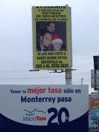Monterrey, NL, 15 de octubre. Los padres de cinco jóvenes que fueron levantados (secuestrados sin intención de pedir rescate) el 30 de agosto en la zona metropolitana de Monterrey pagaron la colocación de un anuncio espectacular para solicitar información sobre el paradero de sus hijos.