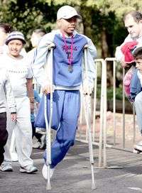Hace un año dejó el ciclismo de ruta tras perder la pierna derecha por cáncer, pero la vida nuevamente le sonrió cuando participó ayer en la Carrera Terry Fox, con la ayuda de muletas.