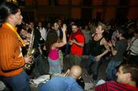 El júbilo de los jóvenes también se manifiesta en las calles de la ciudad de Guanajuato, donde al compás de la música sacudieron el cuerpo en el contexto de la versión 34 del Festival Internacional Cervantino
