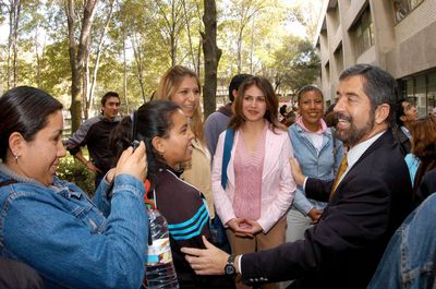 Juan Ramón de la Fuente conversa con alumnos de la FES Acatlán, donde el rector de la UNAM puso en marcha el nuevo Centro de Educación a Distancia