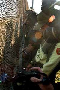 El delegado Zero simula que orina contra la malla fronteriza situada en Playas de Tijuana, donde se reunió ayer con adherentes a la Sexta declaración de la selva Lacandona y escuchó denuncias sobre los numerosos problemas sociales en la región