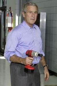 George W. Bush bromea con reporteros en una visita que realizó ayer al campamento infantil de Victory Junction, que atiende a niños con enfermedades crónicas o severas en Randleman, Carolina del Norte. En la imagen, el presidente se dispone a participar en una actividad de cambio de una llanta