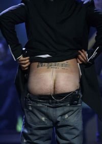 Acción con la que Robbie Williams coronó su actuación, el pasado jueves