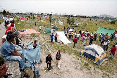 Desalojo voluntario de más de mil personas que invadieron el predio de Telecomunicaciones, ubicado en el Periférico oriente, delegación Iztapalapa, ante la presencia de elementos de la Policía Federal Preventiva que acudieron a retirar a los ocupantes, el 3 de julio pasado