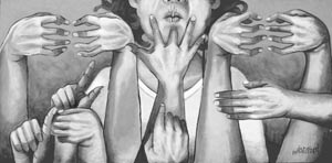 Su mirada es dulce y marina, acorde a sus ojos claros y tranquilos. Pero la oscuridad y tristeza marcan a veces sus días, como cuando sufrió el rechazo de los grupos de sordos que se comunican mediante las señas y dejó de pintar, partida a la mitad entre dos mundos que no (la) entendía (n). Y es que Ixchel pasó treinta años de su vida aprendiendo a comunicarse a partir del método oral, sin conocer la cultura y el lenguaje de las señas, por lo que ha sido muy lento el proceso de su aceptación. Así, experimenta un doble rechazo: el de los oyentes que la sienten lejana, y el de los sordos que desconfían del uso (comercial) que pueda hacer del código de señas que ejercita con las manos y plasma en su pintura más reciente, la que ha mostrado desde 2002 en la Universidad de Gallaudet en Washington dc (donde han adquirido su obra), y en el Instituto Mexicano de Cultura en Washington DC.