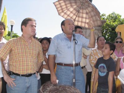 El priísta Andrés Granier Melo muestra la constancia de mayoría que lo acredita como ganador de las elecciones por la gubernatura de Tabasco. Mientras, el ex candidato de la coalición Por el Bien de Todos, César Raúl Ojeda Zubieta, encabezó la primera ''asamblea informativa'', en la cual anunció que el miércoles presentará la impugnación de los comicios ante el Tribunal Electoral de Tabasco