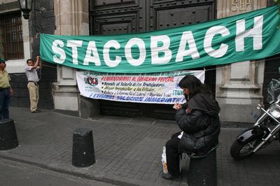 Este lunes podría haber huelga de trabajadores de los colegios de Bachilleres de 17 estados. En la gráfica, un plantón, la semana pasada, frente a la SEP