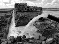 Con una pequeña motobomba de gasolina el agua es conducida por un angosto canal hasta una primera pila. Ahí el líquido dura semanas antes de pasar a una segunda pila, y semanas después a otra. En total son 11 pilas cristalizadoras de aproximadamente 3 mil 500 metros cuadrados cada una, que funcionan como contenedores del agua salada extraída de la noria.