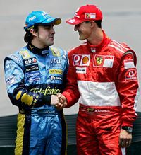 Fernando Alonso y Michael Schumacher, durante el Gran Premio de Brasil