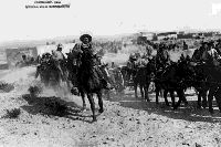 El general Francisco Villa posa para la compañía cinematográfica estadunidense Mutual, durante la salida de Ojinaga, en 1914